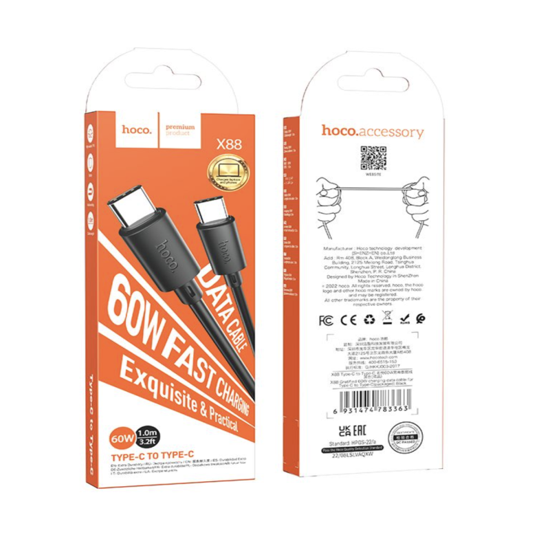 1. Type-C to Type-C PD charging data cable.2. Supports 60W (20V / 3A) fast charging for laptop and 3A for phone.3. Suitable for laptops, tablets and phones charging.4. Wire outer sheath: PVC.5. Connector housing: PVC.6. Length: 1m. Weight: 24g.